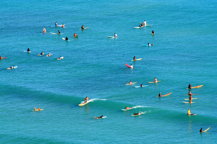 파도타기 좋은 위치(파도가 깨지는 바깥쪽)에서 파도가 오기를 기다리는 것을 말합니다 이때 일렬로 기다리기 때문에 라인업이라고 부릅니다.