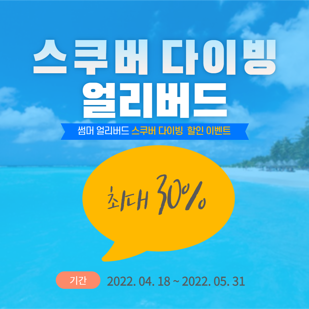 2022년 스쿠버 다이빙 시즌을 위한 얼리버드 이벤트를 진행하니 미리 준비하시어 강원도 동해, 제주도 등 아름다운 한국 바다에서 즐겁고 안전한 스쿠버 다이빙을 즐겨보세요.