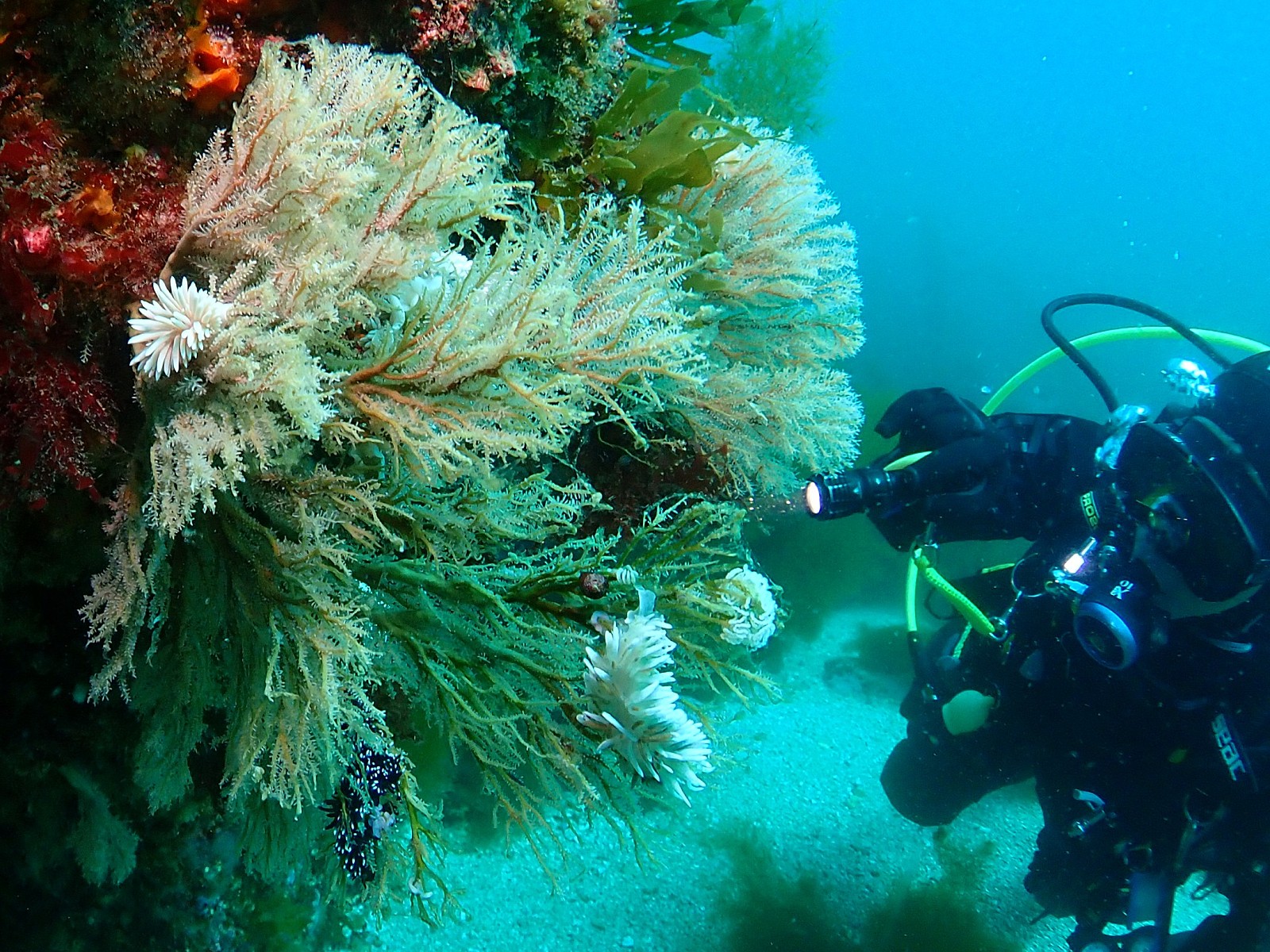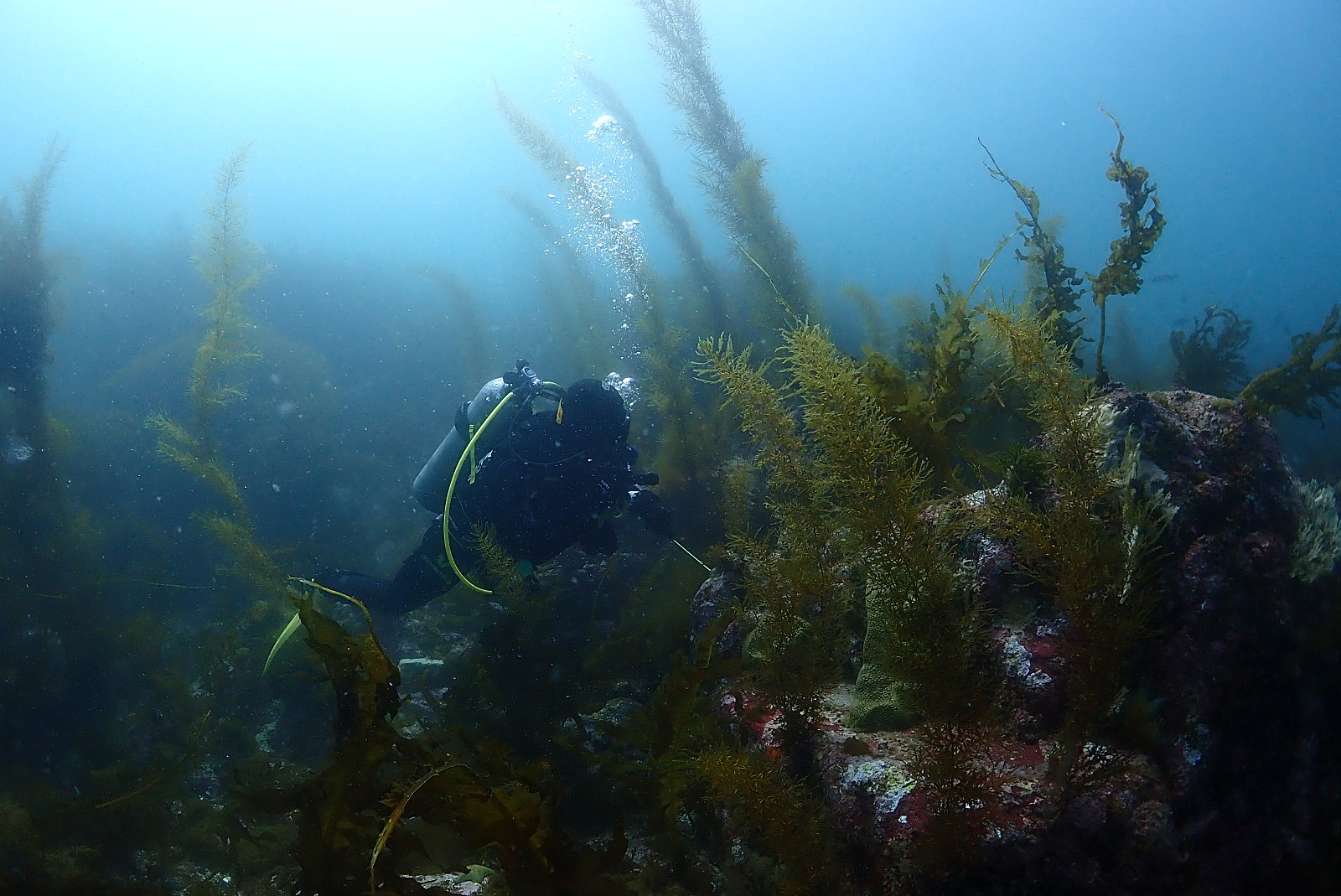왕돌초는 울릉도와 같이 난류가 흐르는 곳이라 시야도 연안보다 매우 좋고 수온 또한 따뜻해서 웻슈트로도 가능한 곳입니다. 6월초 수온이 17도정도 나오며 여름에는 24도 이상이라고 하니 따뜻하죠? 게다가 평균시야도 15미터로 좋은 편이라 재미있는 다이빙을 즐길 수 있을 듯 합니다.
