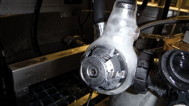 보통 동계 다이빙은 10℃ 이하의 물에서 진행하는 다이빙을 말합니다. 그런데 이런 곳에서는 공기탱크의 공기가 주변 온도를 떨어뜨려 호흡기가 얼고 얼음이 생기는 경우도 있습니다. 그럴 경우 호흡기 작동이 안되는 경우가 발생함으로 언제나 호흡기가 원할하게 작동할 수 있도록 물고기의 '부동단백질'과 비슷한 동결방지 기술이 많이 포함되어 있습니다.