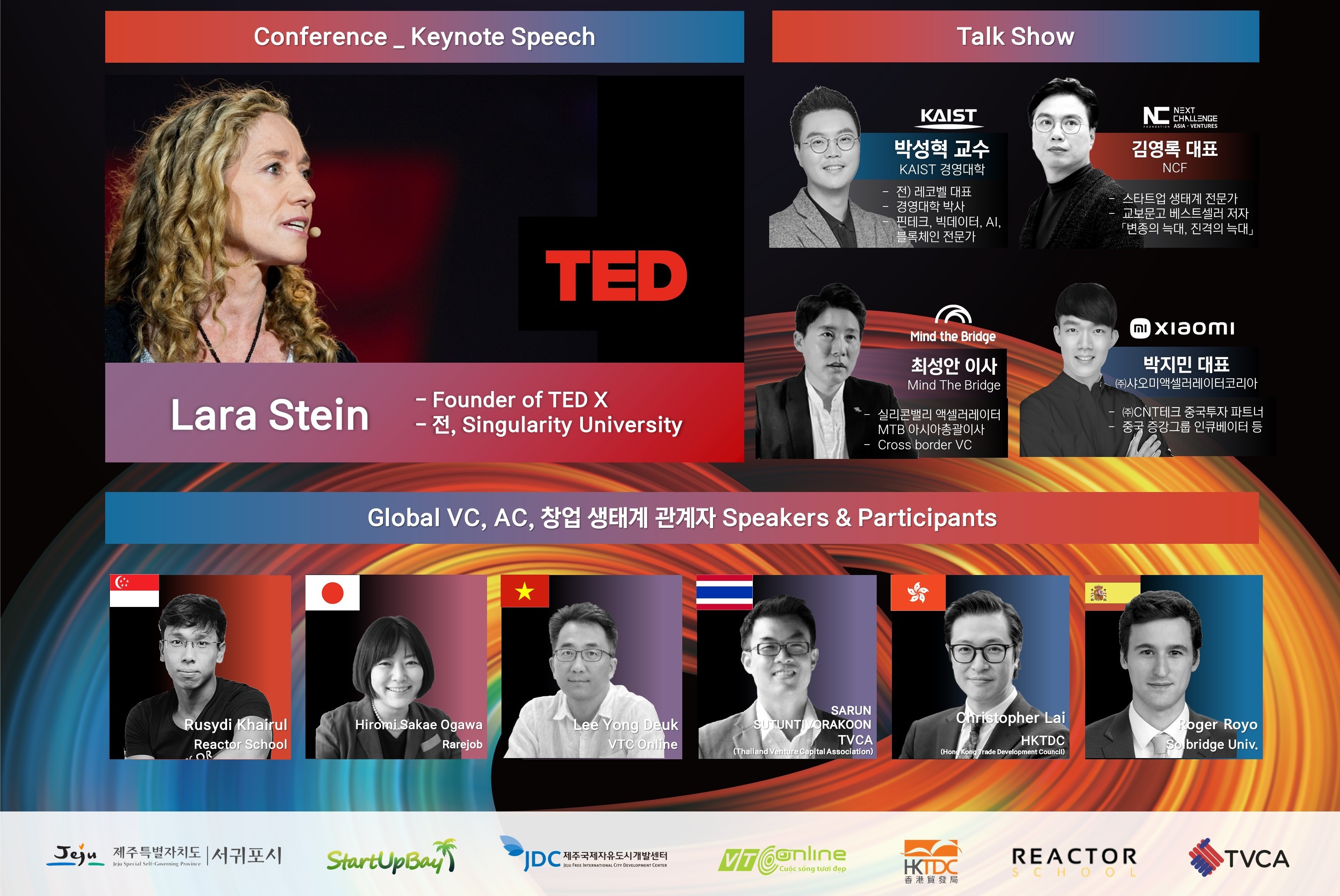 본 컨퍼런스는 스타트업 생태계의 지속 가능한 발전과 글로벌 진출을 위해 개최되었으며 태국, 프랑스, 싱가폴, 베트남, 미국, 홍콩, 영국, 일본의 전문가들이 참가하여 심토 깊은 논의를 가졌습니다.