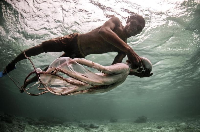 숨을 10분 넘도록 참을 수 있고 최대 70m 까지 잠수하여 바다속을 걸어다니면서 물고기를 잡을 수 있는 물 속에 특화된 사람들입니다.