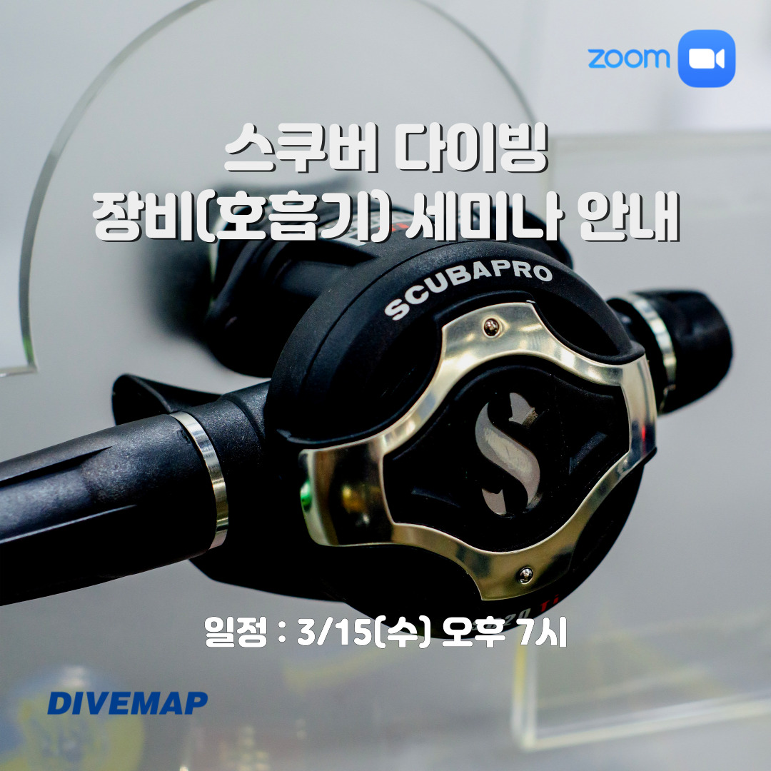 | [2023.03.29(수)] 스쿠버 다이빙 장비(호흡기) 세미나 안내 (0) | 2023.03.18 |