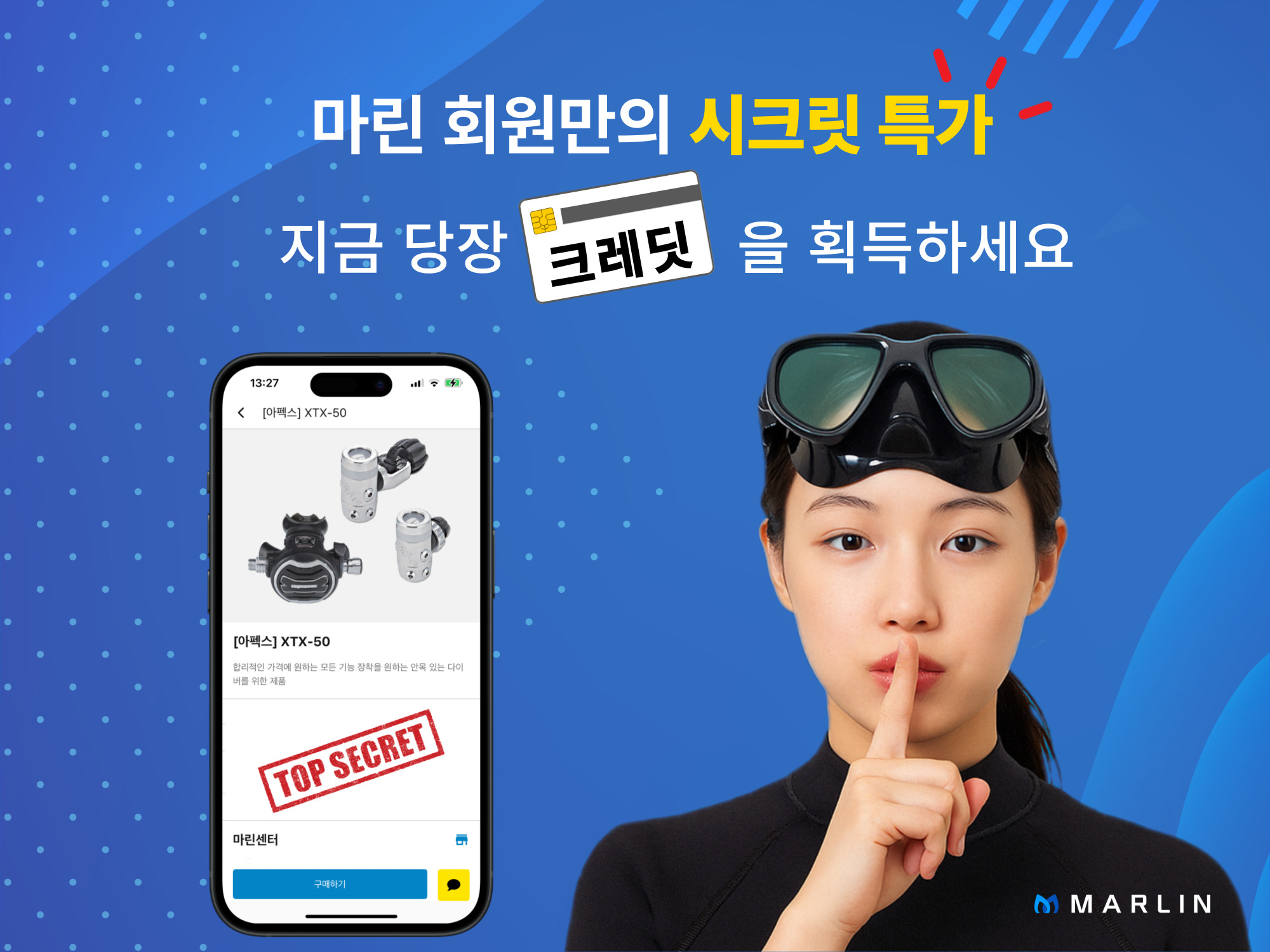 • 마린에서 판매하는 전상품에 대해 시크릿 특가로 구매 가능