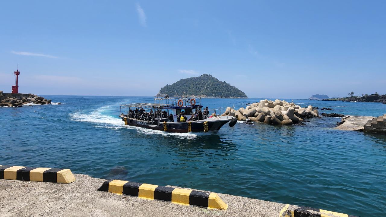 제주도 주요 다이빙 포인트인 문섬, 범섬, 섶섬 등에서는 기본적으로 보트 다이빙을 진행합니다.
