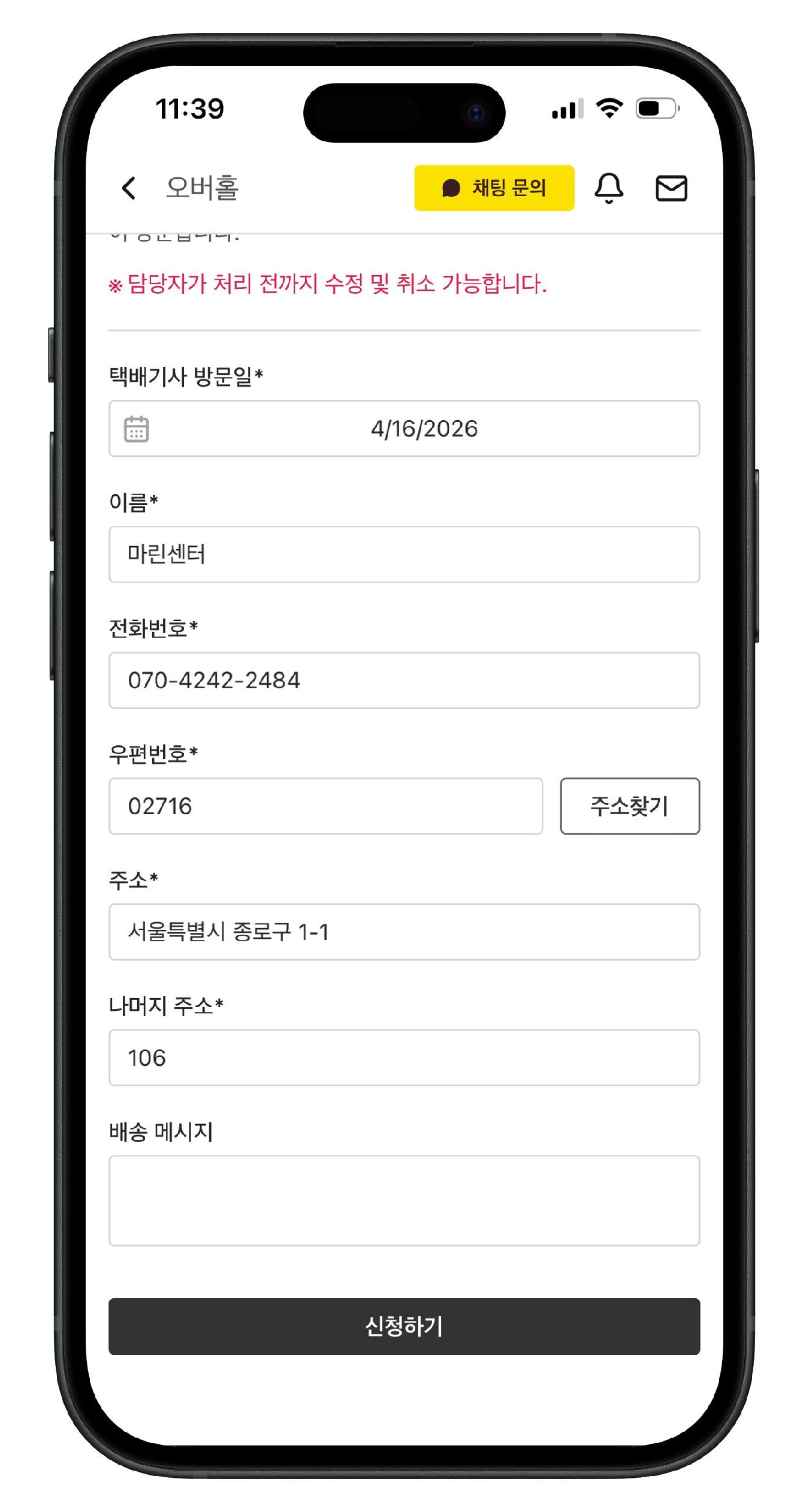 터치 몇 번이면 방문택배 신청 끝!
